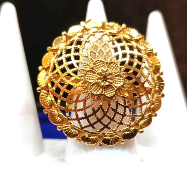 Discover timeless elegance with Gaynar Baksha’s ” Centre Floral Finger Ring” , a masterpiece that blends classic design with modern charm. Crafted with precision, this ring is part of our exclusive collection of gold finger ring for women, designed to complement both traditional and contemporary outfits. The delicate floral motif symbolizes beauty and grace, making it a perfect accessory for daily wear or special occasions.