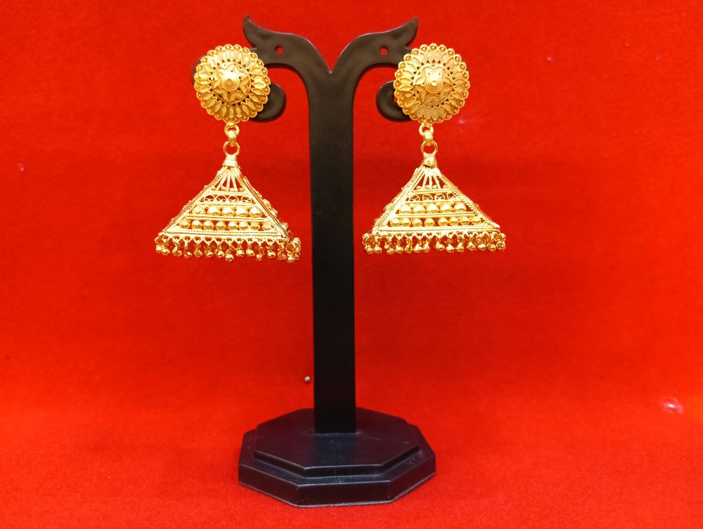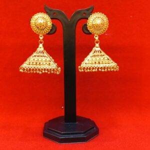 Gold Earring that makes a statement. This jaffri piece of art reminds one of the rich karigari of the craftsmen. Be the point of attention. Please note – The dimension of the actual product might vary.