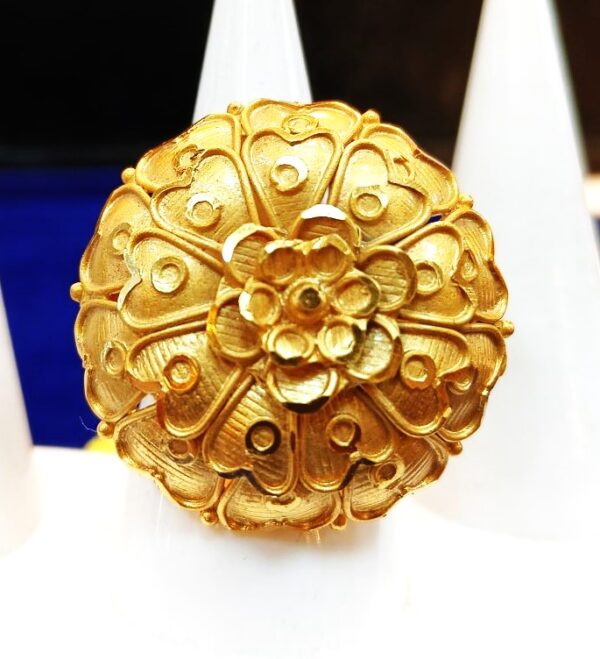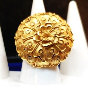 Celebrate elegance with Gaynar Baksha’s ” Marigold Flower Ring “, a stunning design inspired by the beauty of blooming marigolds. Crafted with intricate detailing, this ring is the perfect choice for those who appreciate flower rings for women gold, combining traditional artistry with contemporary charm. A must-have in our collection, it stands out as a versatile accessory for both daily wear and festive occasions.