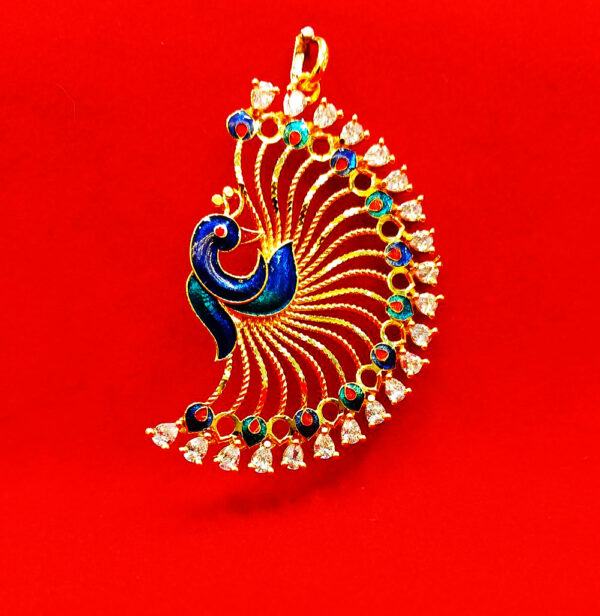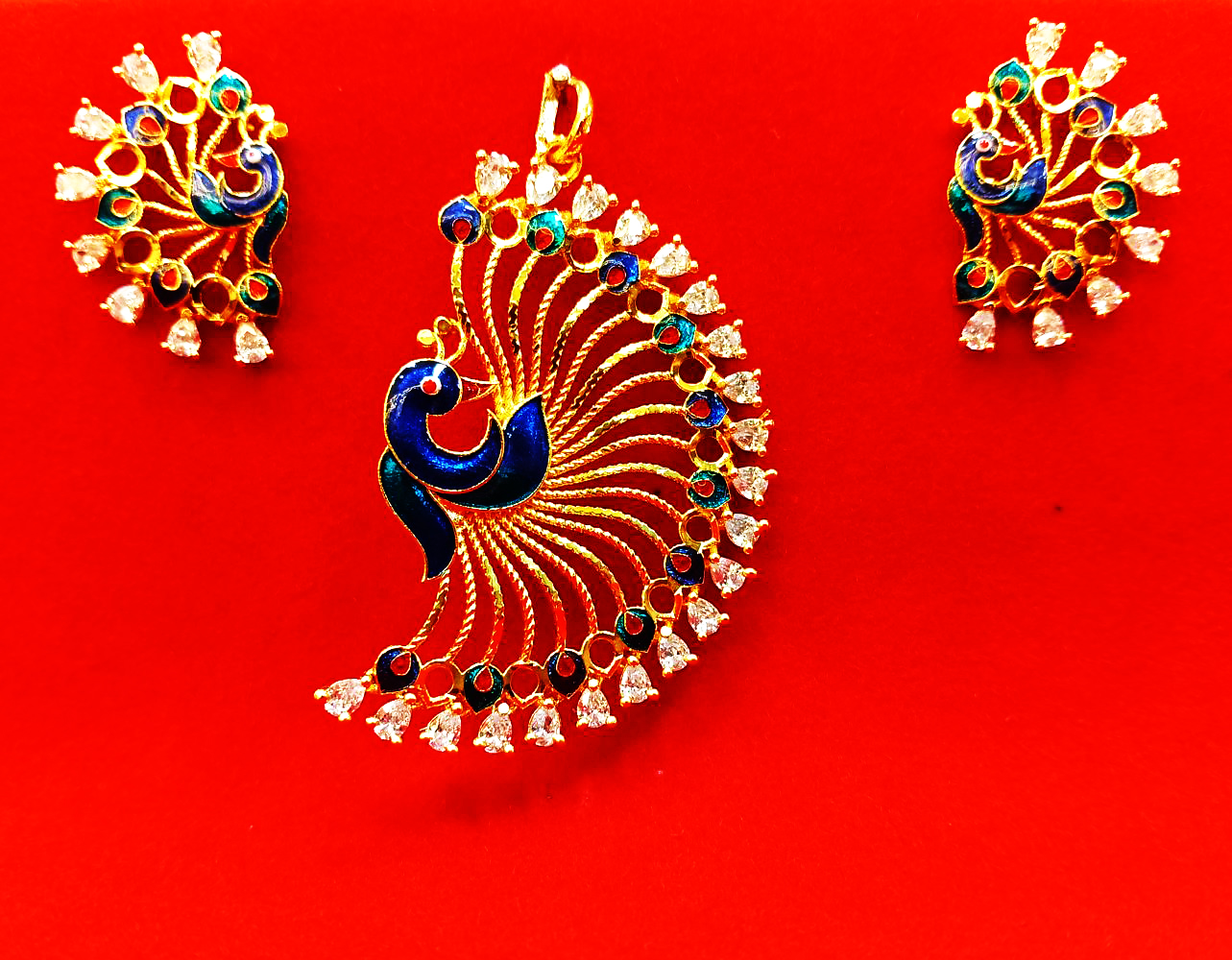Adorn yourself with timeless elegance wearing our Gold-Plated Peacock-Shaped Pendant. Versatile for daily wear, special occasions, or as a thoughtful gift, this piece exudes sophistication. The radiant gold color complements all outfits, making it suitable for sarees, kurtis, Indian suits, and formals. Embellished with American diamonds, this pendant from our Traditional Collection adds a touch of glamour to every moment. Indulge in the classic design, symbolizing love and grace. Elevate your style effortlessly with this exquisite heart-shaped locket that seamlessly merges tradition and modernity, capturing the essence of refined beauty for all regions and occasions.