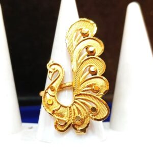Embrace regal elegance with Gaynar Baksha’s ” Peacock Ring “, a masterpiece inspired by the grace and beauty of India’s national bird. Designed with intricate patterns, this stunning piece highlights the vibrant charm of a peacock ring for women, making it a perfect accessory for weddings, festive occasions, or even as a statement piece for everyday fashion.